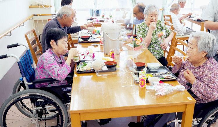 養護老人ホームは身体的や精神的、経済的といった様々な理由において在宅での生活が困難な方が入所されています。原則的に身の回りのこと(食事、排泄など)はご自分で出来る方が生活されています。